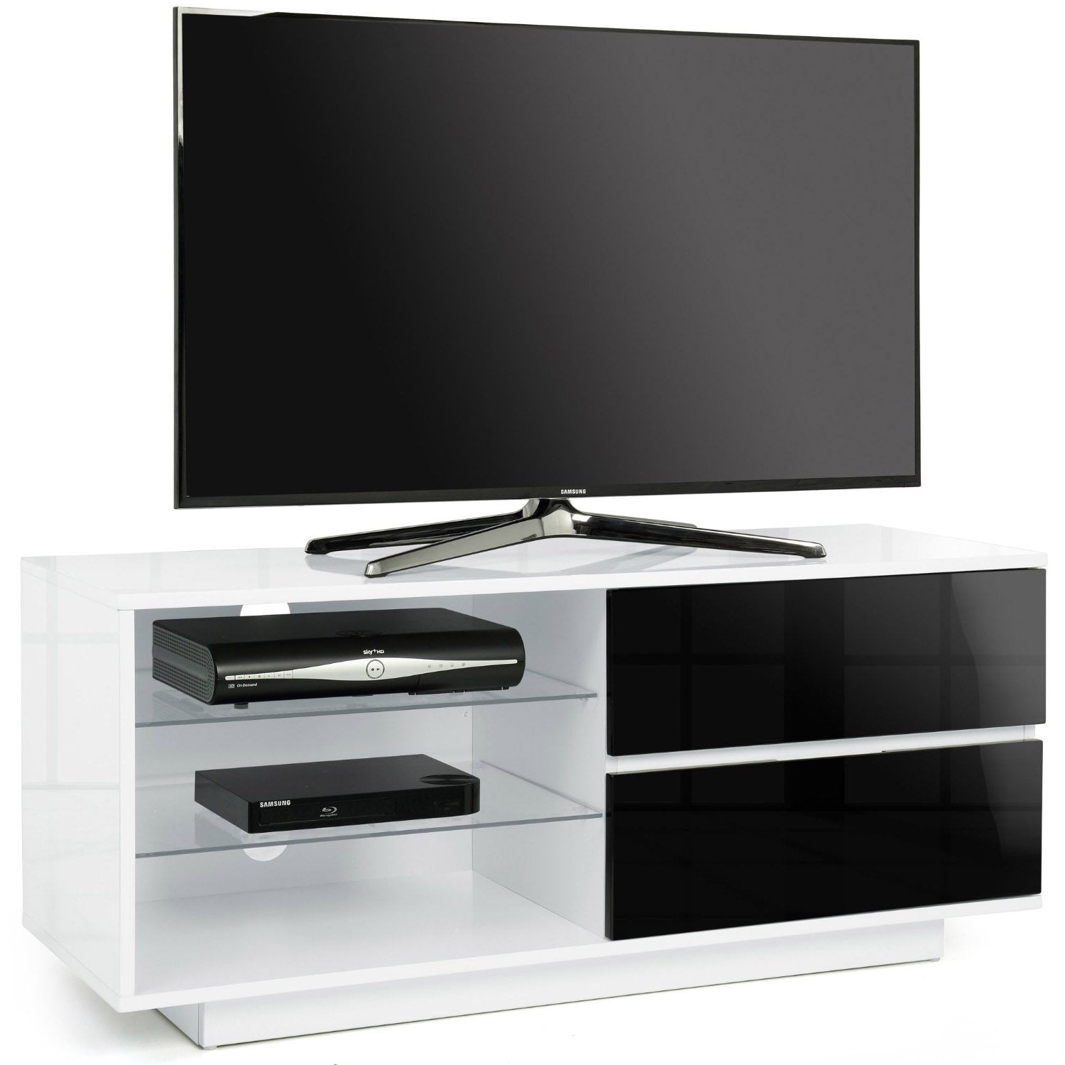 Centurion Supports Gallus High Gloss White with 2-Gloss Black Drawers and 3-Shelf 32"-55" LED/OLED/LCD TV Cabinet