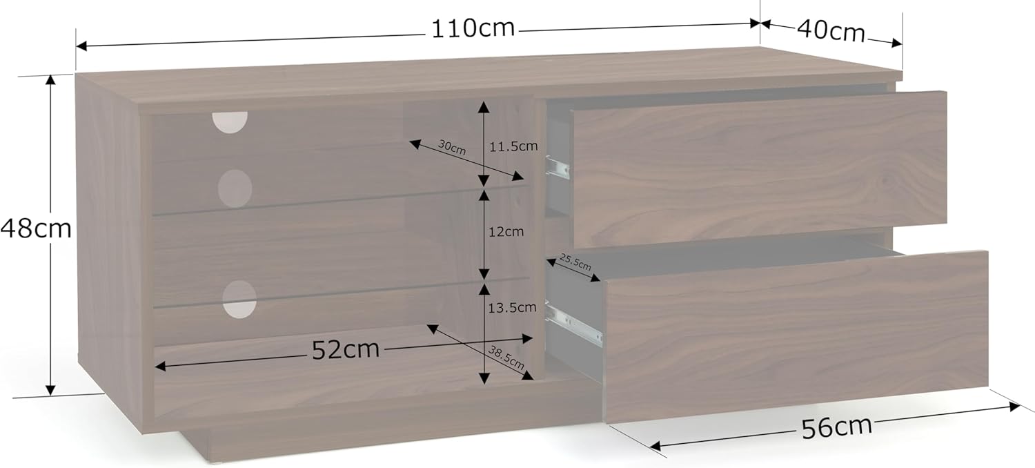 Centurion Supports Gallus Premium Walnut with 2-Black Drawers and 3-Shelves 32"-55" LED/OLED/LCD TV Cabinet