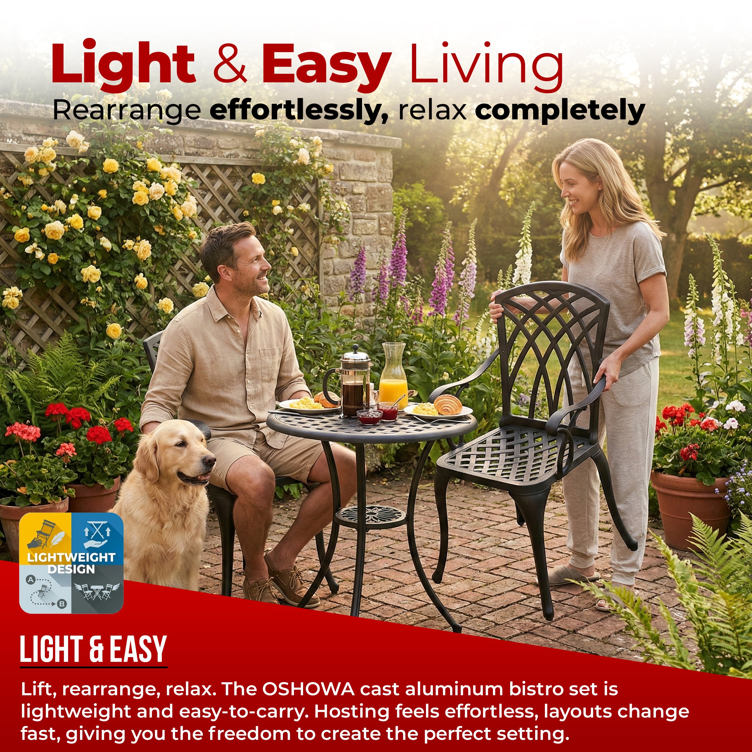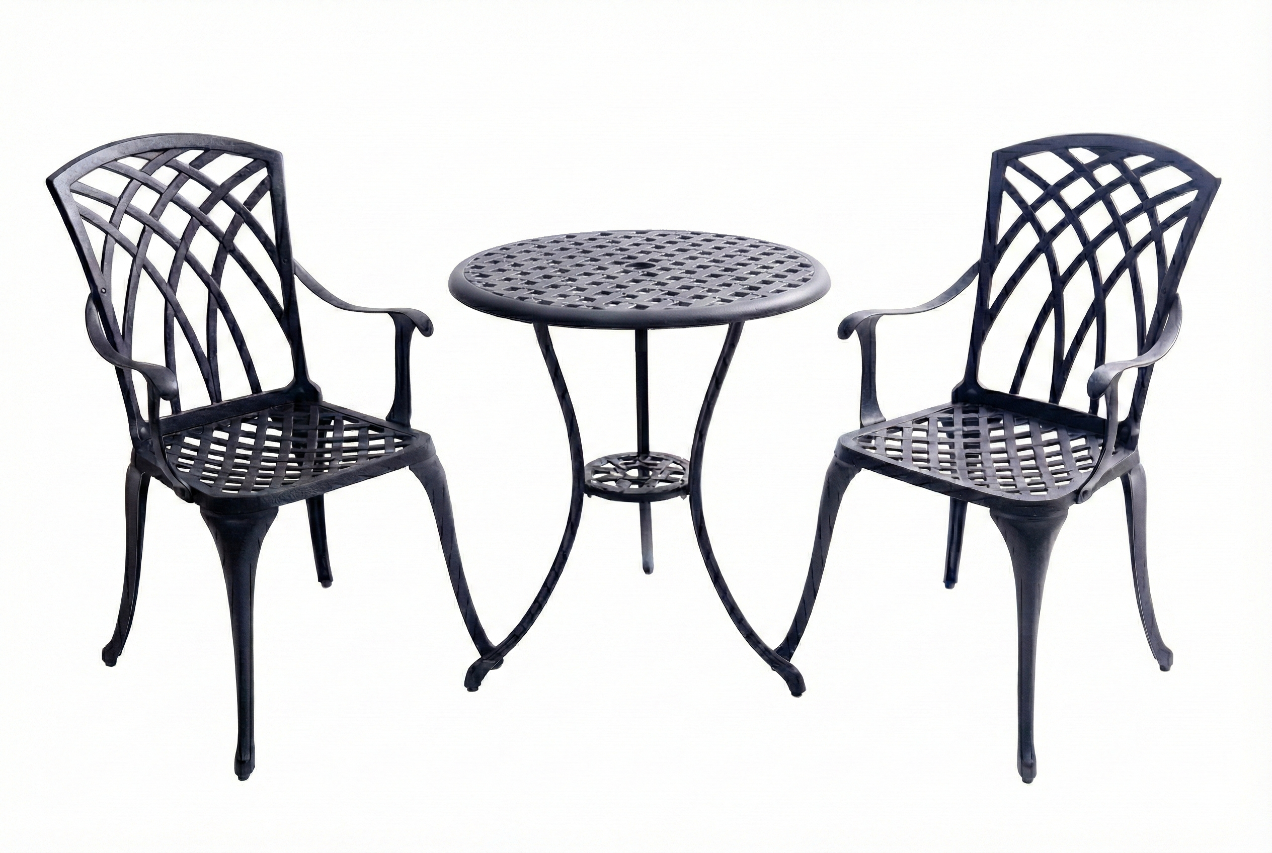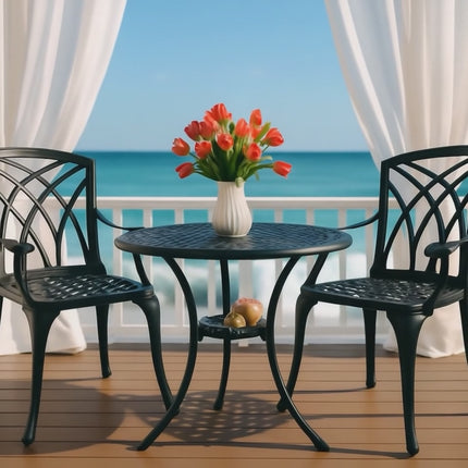 Centurion OSHOWA Luxurious Garden and Patio Table and 2 Large Chairs with Armrests Cast Aluminium Bistro Set - Black