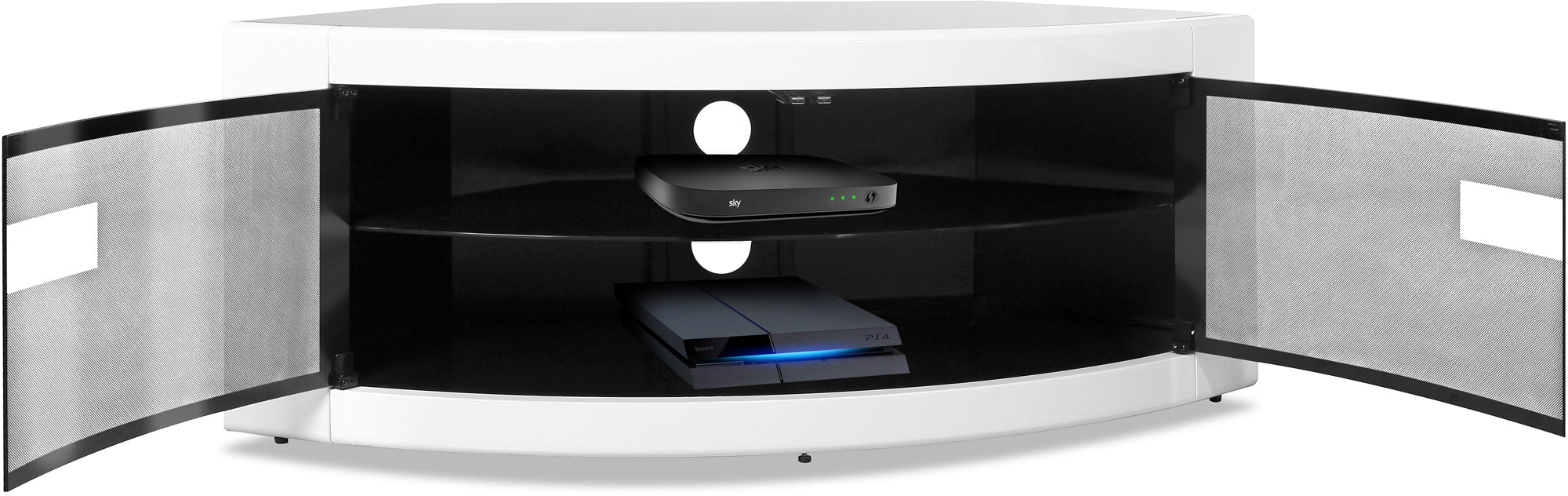 Revolutionise your living room or media room with the Pangea TV Cabinet, a sleek and modern piece designed to complement your entertainment setup. This corner TV unit is perfect for TV screens up to 50 inches and is ideal for creating a stylish, clutter-free space. Whether you're a movie enthusiast or a gaming aficionado, the Pangea is built to support your home cinema system, Blu-ray players, Sky/Virgin/BT receivers, amplifiers, digital boxes and games consoles, offering ample storage and easy access to all your devices.