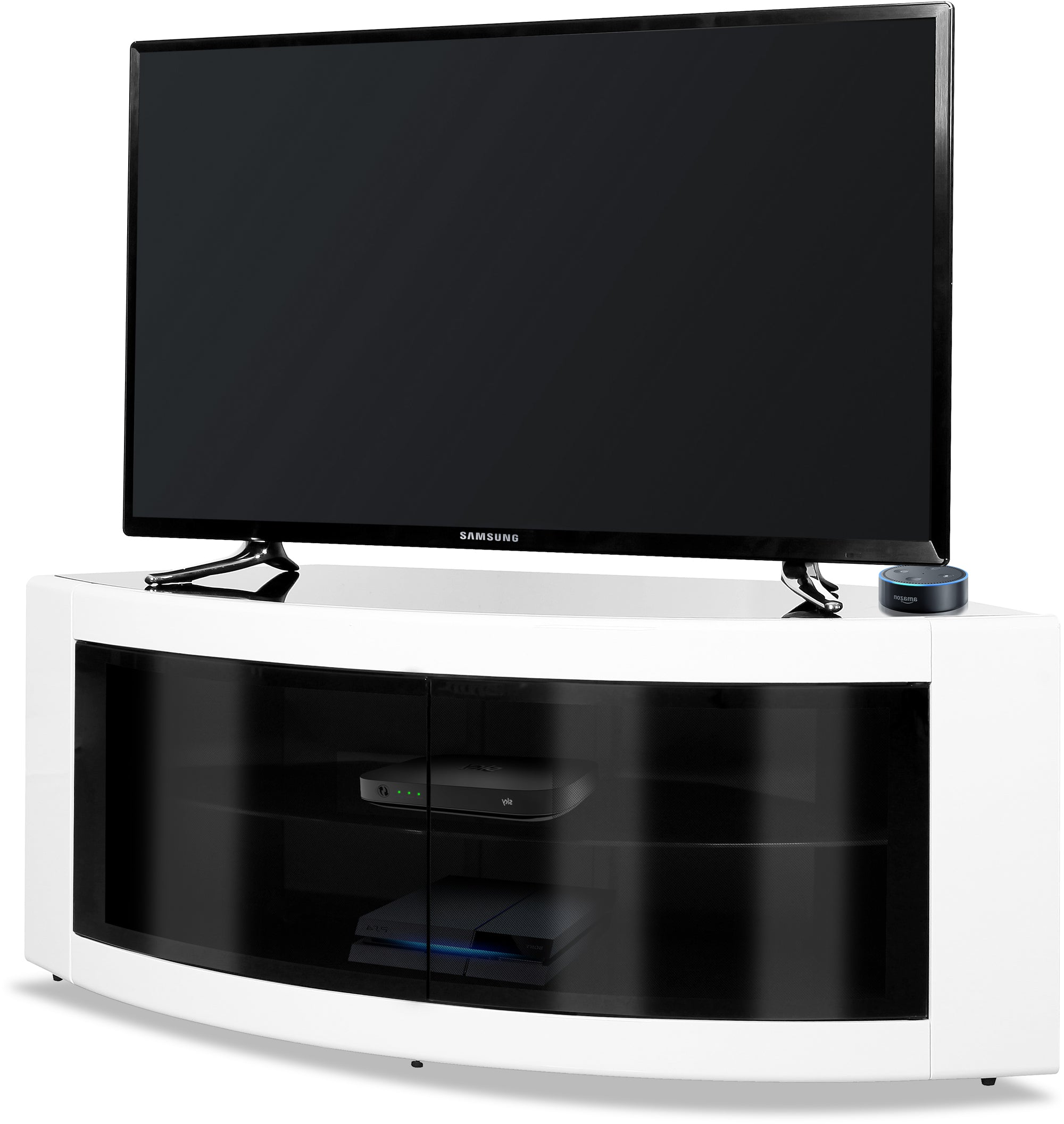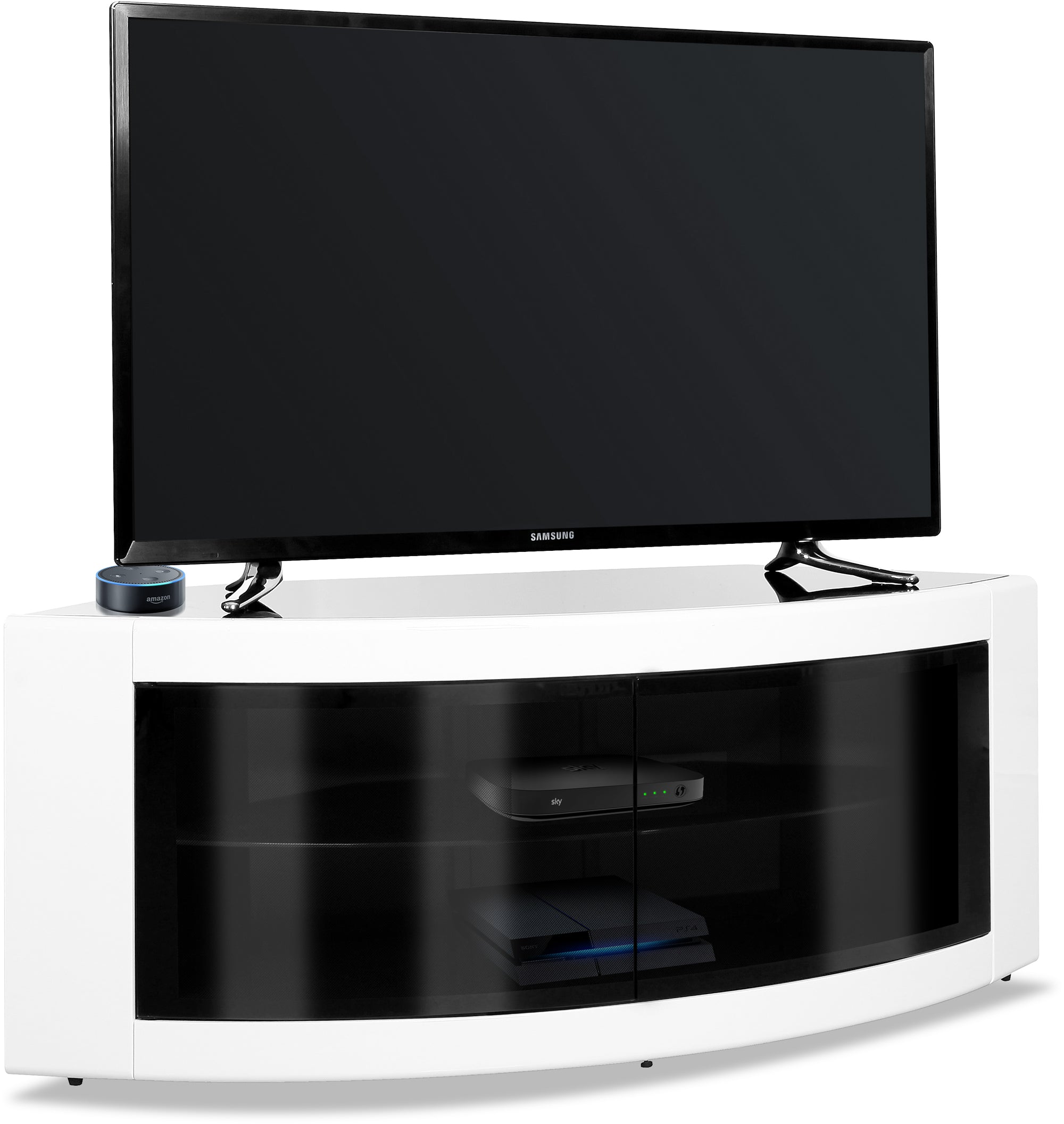 The Pangea TV stand has been thoughtfully designed to fit seamlessly into any corner, providing a space-saving solution for smaller rooms or more compact spaces. Its smooth, curved edges enhance its minimalist and contemporary design, making it a perfect choice for modern homes. The rear panel of the unit is equipped with generous ventilation, ensuring that any excess heat from your electronic equipment is efficiently dispersed, helping to protect your devices and maintain optimal performance.