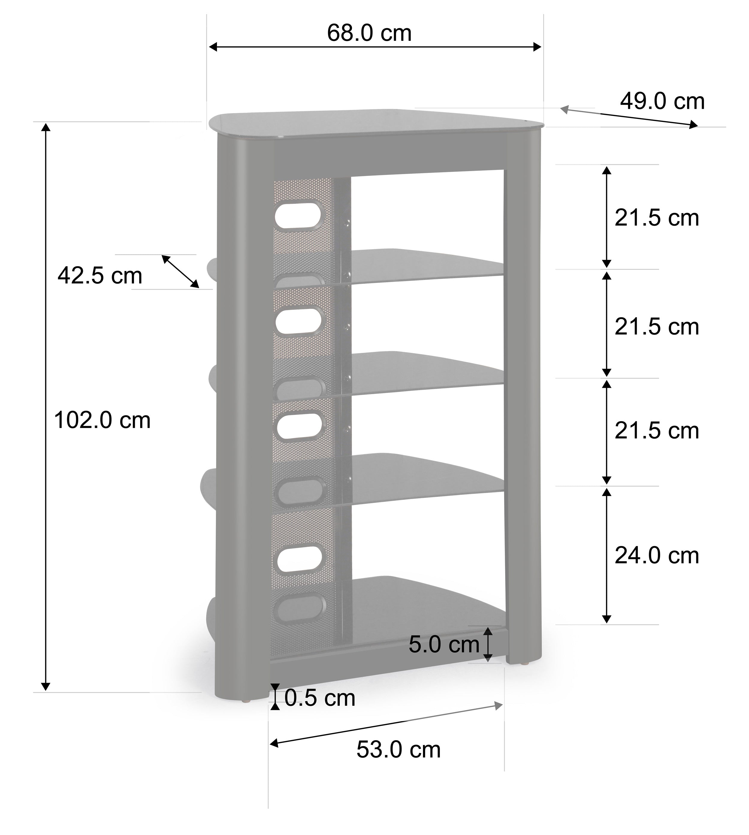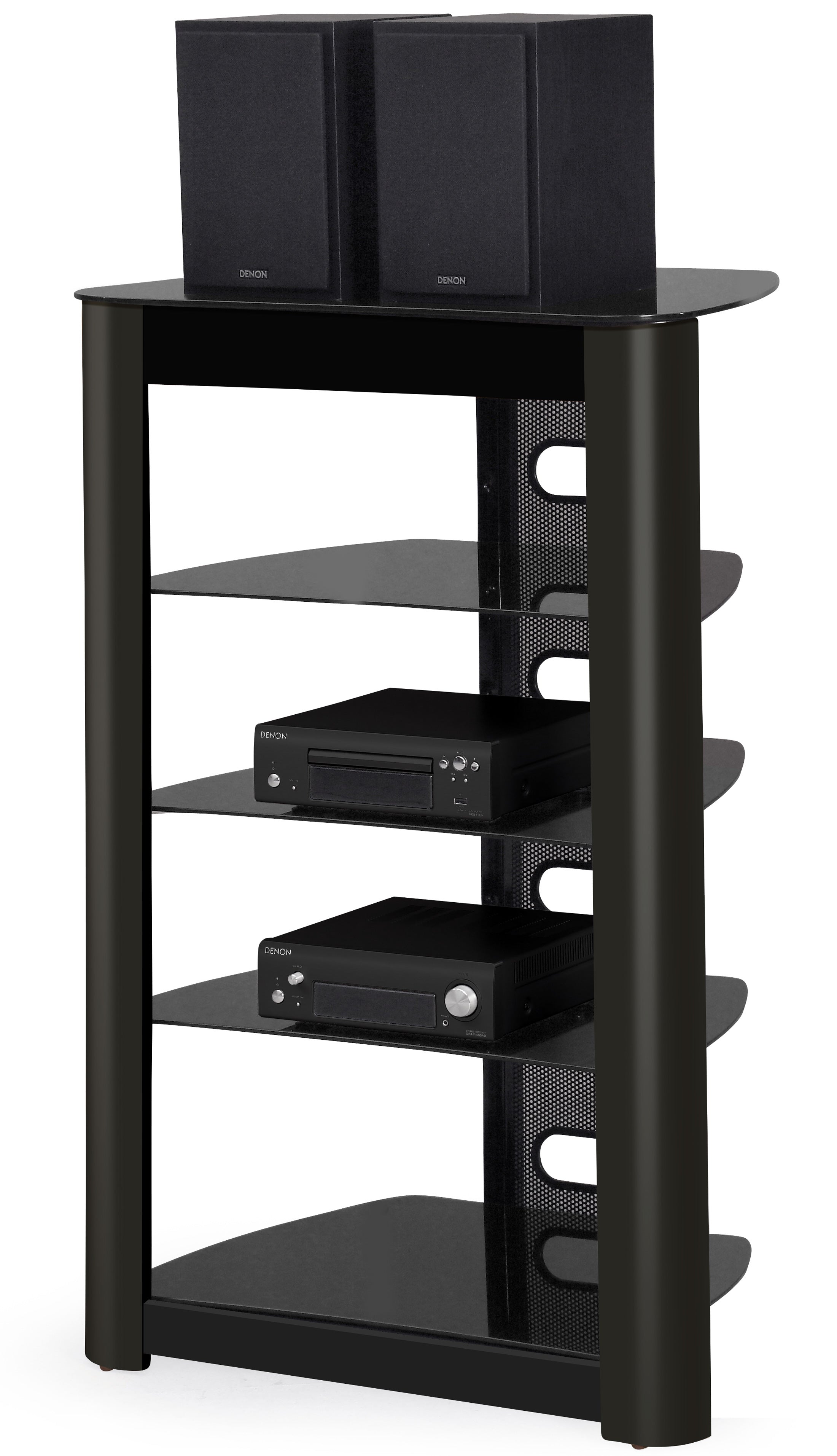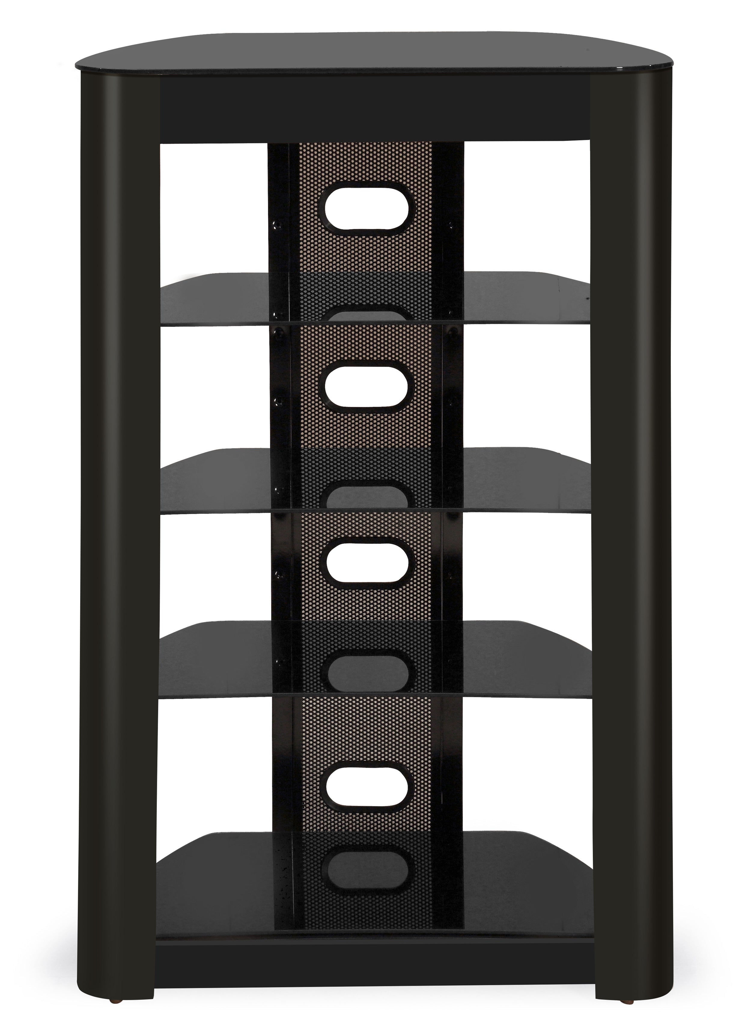 Centurion Supports Zinnia 5-Shelf Gloss Black with Black Fascia Flat Screen TV/Hi-Fi/AV Rack Glass Stand - Grade A