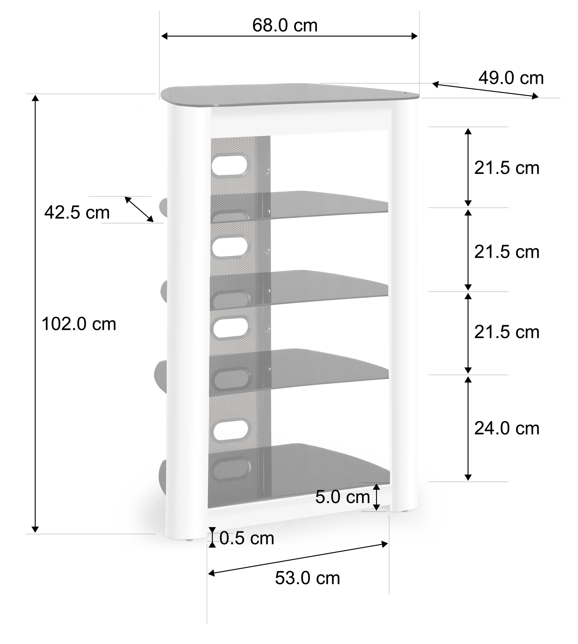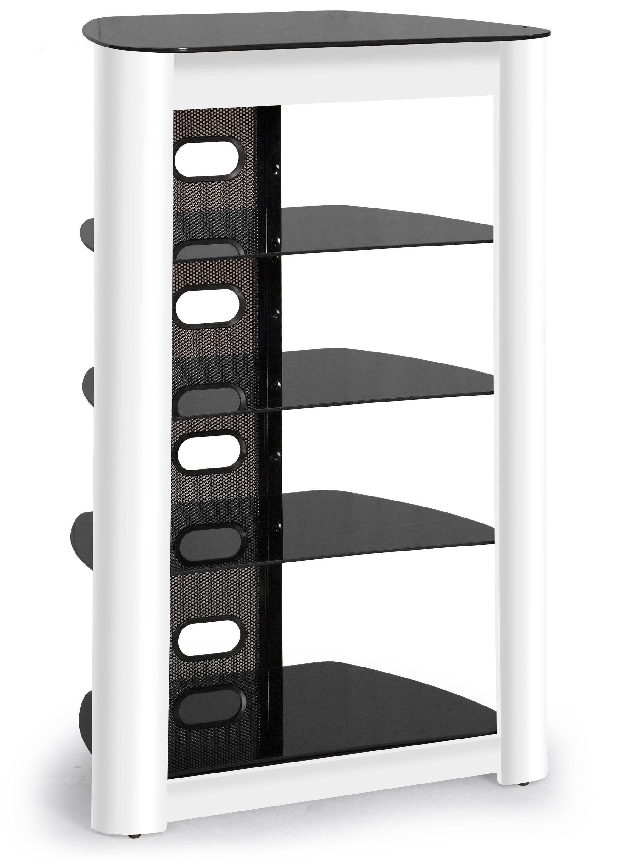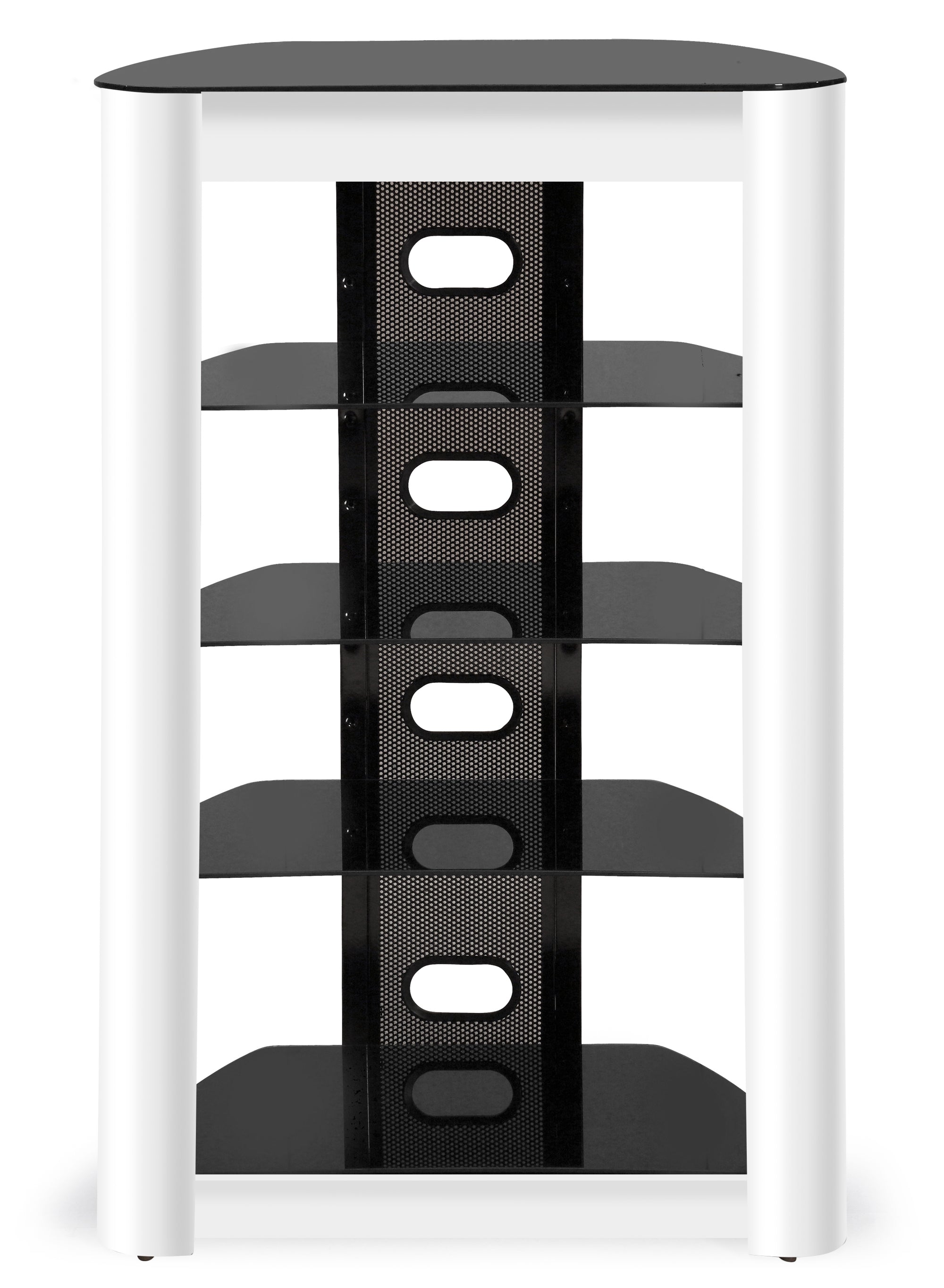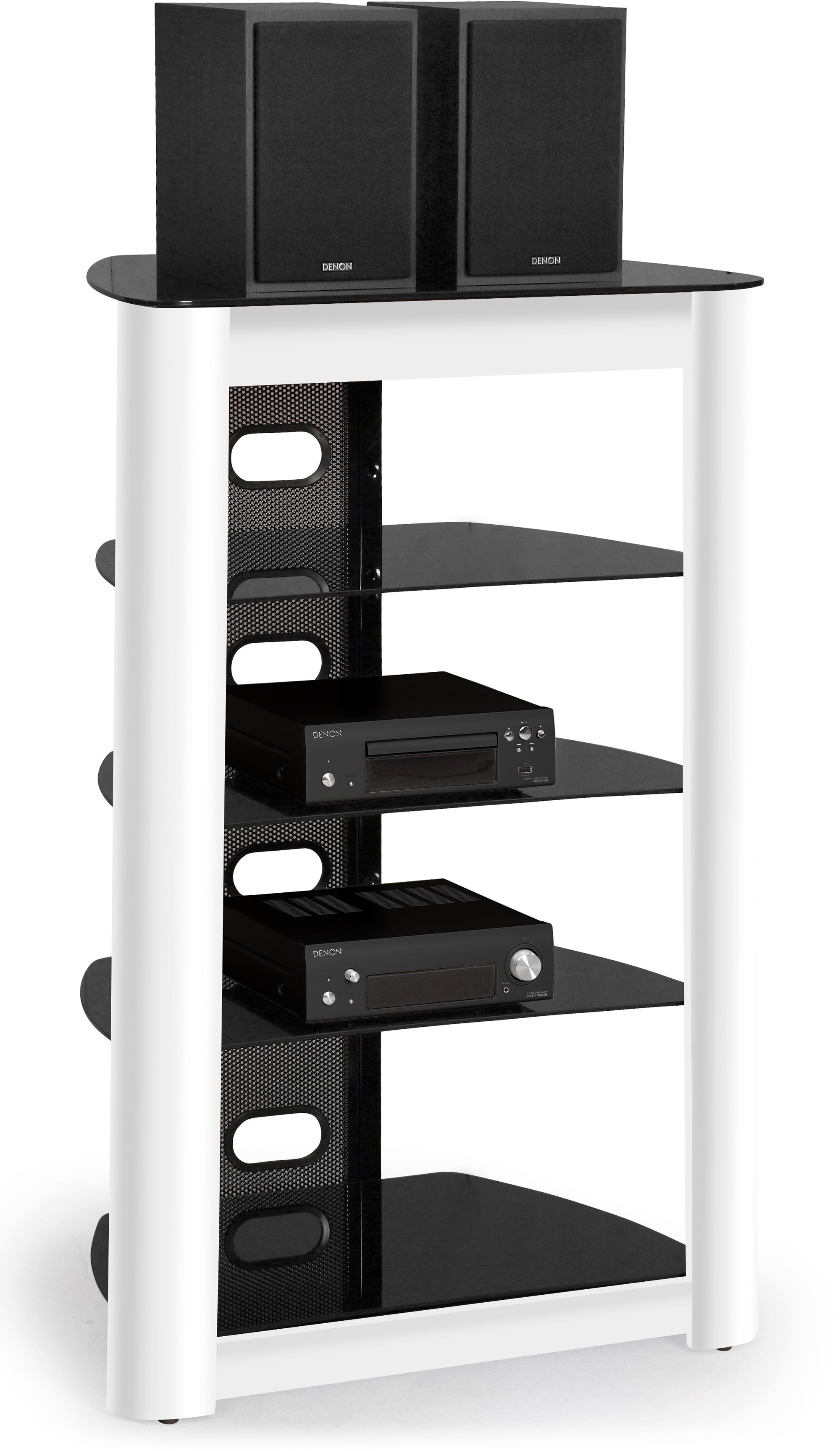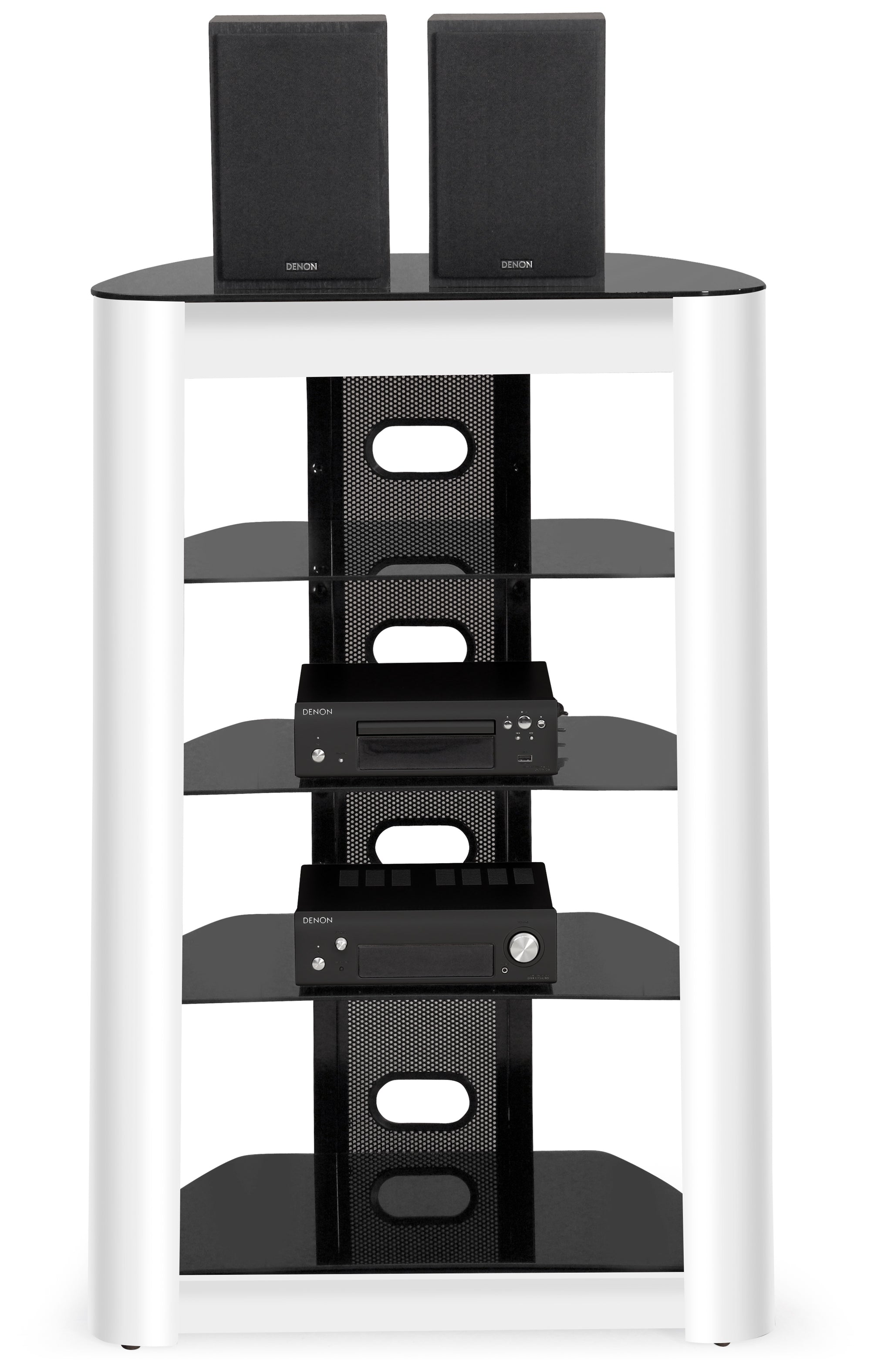 Centurion Supports ZINNIA 5-Tier Black Glass Shelves with Gloss White Fascia Entertainment Media Audio Rack - Grade A