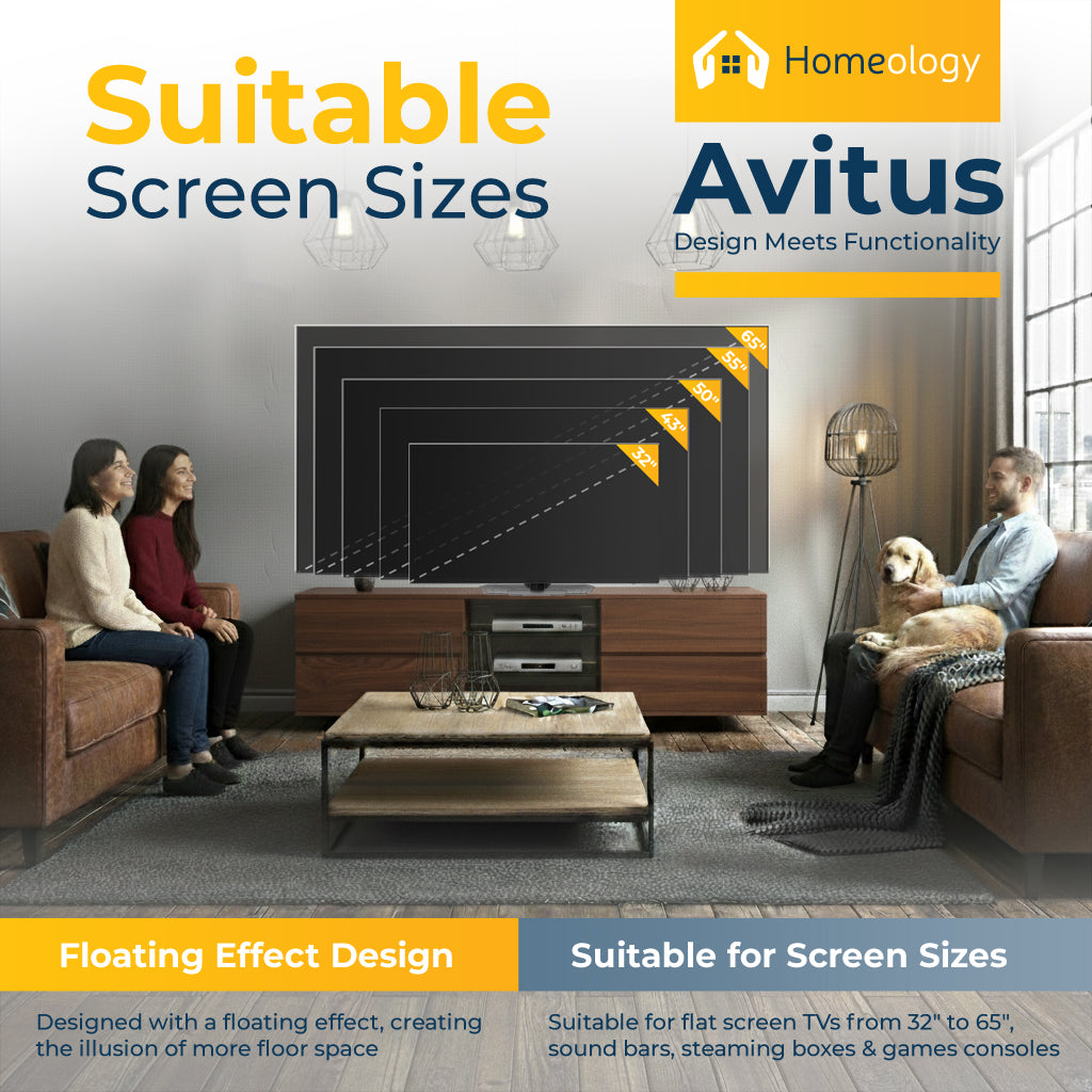 Homeology Avitus Premium Walnut with 4-Walnut Drawers and 3-Shelf 32"-65" LED/OLED/LCD TV Cabinet