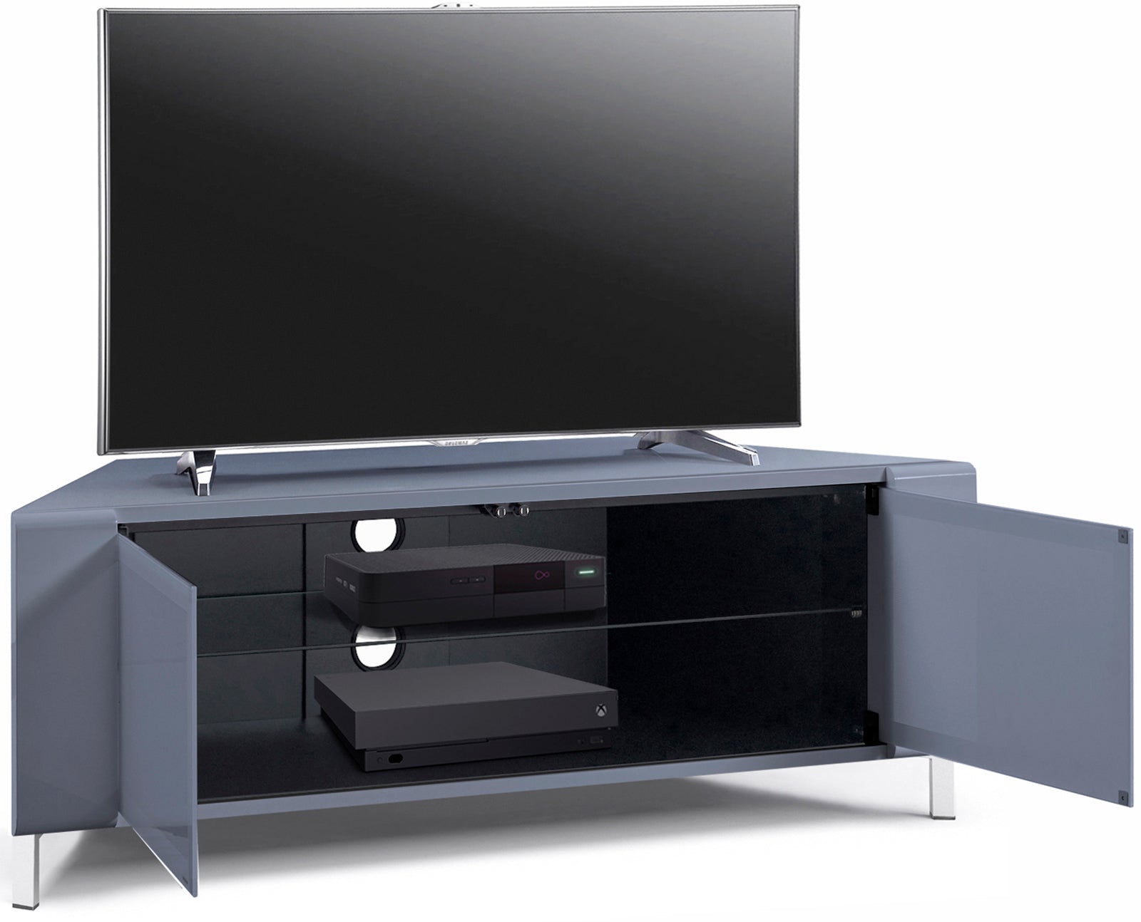 MDA Designs CORVUS Corner-Friendly Grey BeamThru Glass Doors with Grey Profiles Contemporary Cabinet for Flat Screen TVs up to 50"