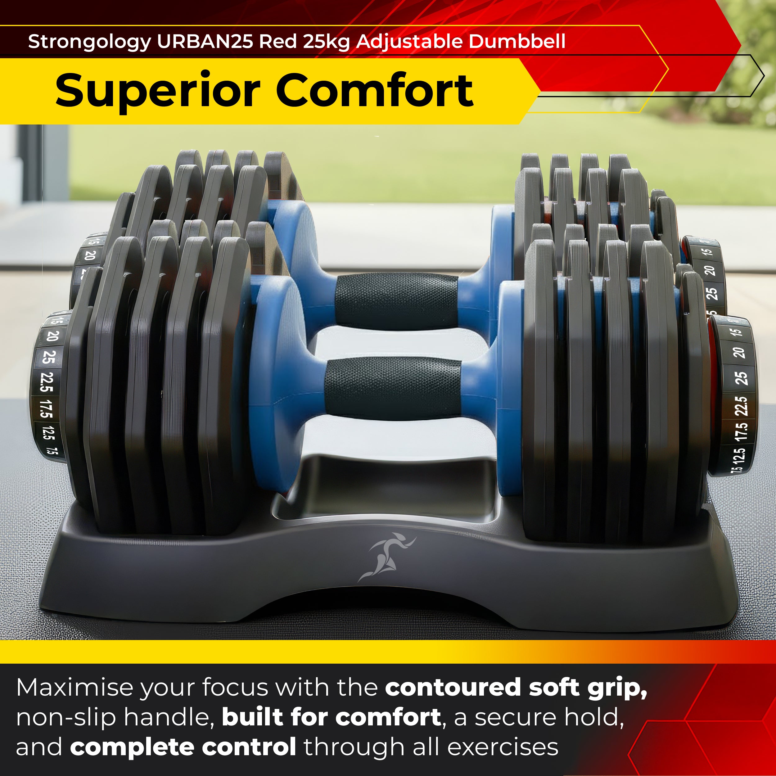 Strongology Urban25 Home Fitness Black and Blue Adjustable Smart Dumbbells from 2.5kg up to 25kg Training Weights